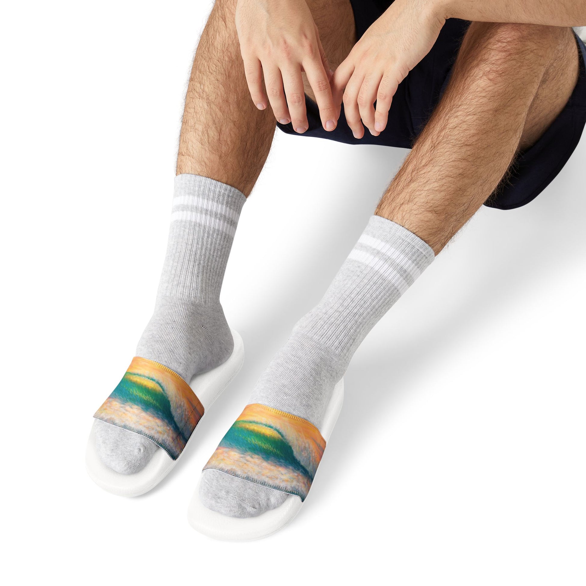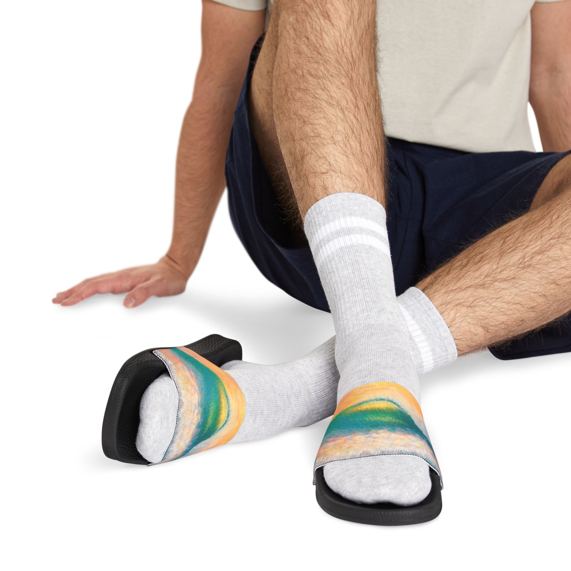 Take on the summer heat with style thanks to these personalized sandals for men. Made with PU outsoles and edge-to-edge strap customization that will never peel, crack, or fade, these sandals come packed with both comfort and durability. The straps are made with neoprene and polyester to avoid chafing while the ergonomic sole keeps discomfort at bay.